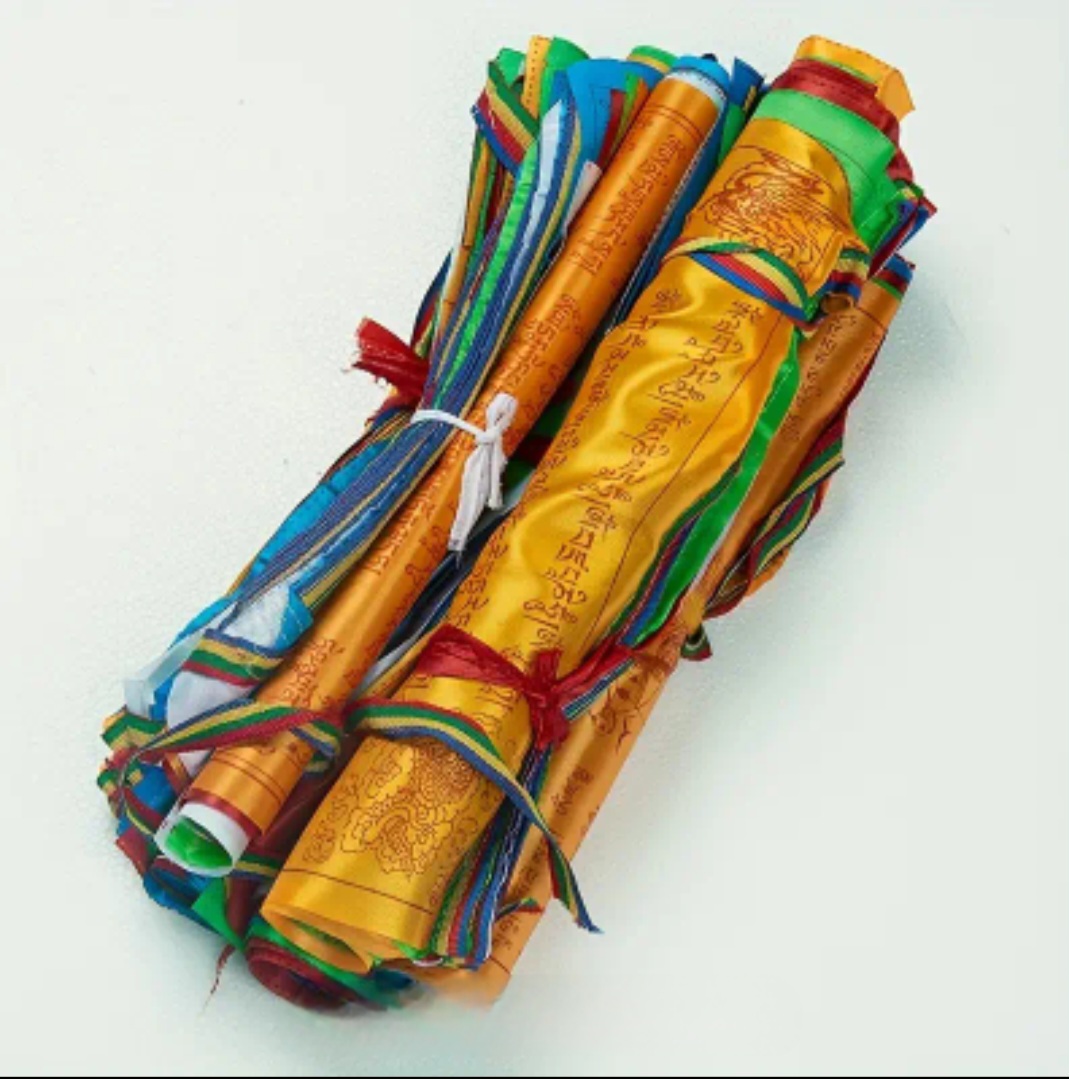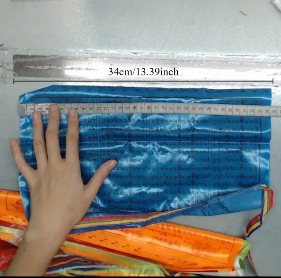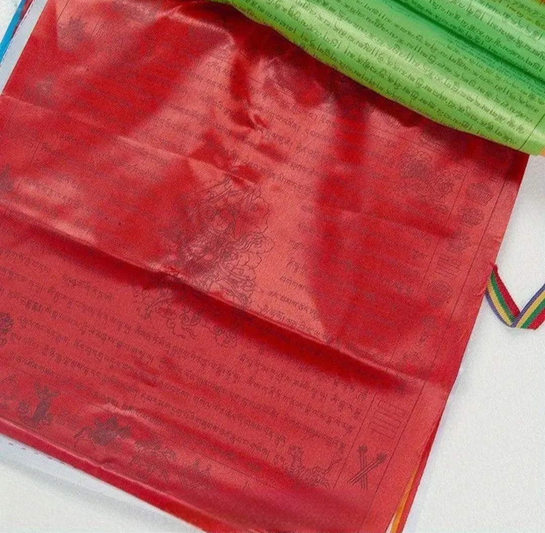 Tibetische Fahnen mit 5 m Länge, bunt mit goldenem Text, ideal für den Garten oder als Heimdekor.